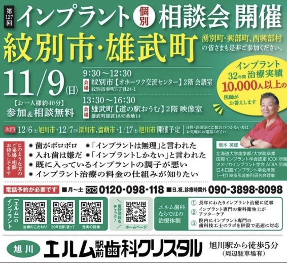 11月9日(日)紋別・雄武町インプラント無料個別相談会開催