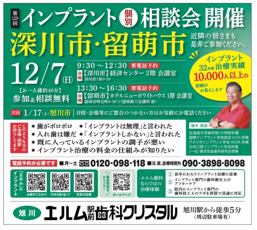 12月7日(日)深川・留萌無料インプラント相談会開催