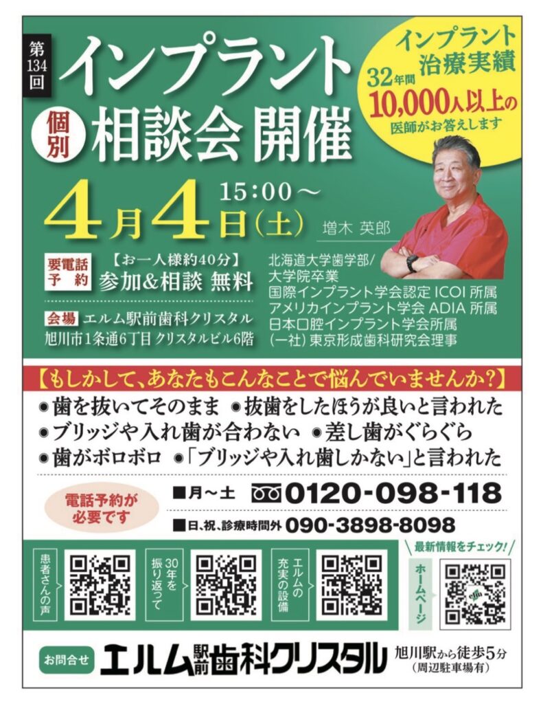 4月4日(土)旭川無料個別インプラント相談会開催